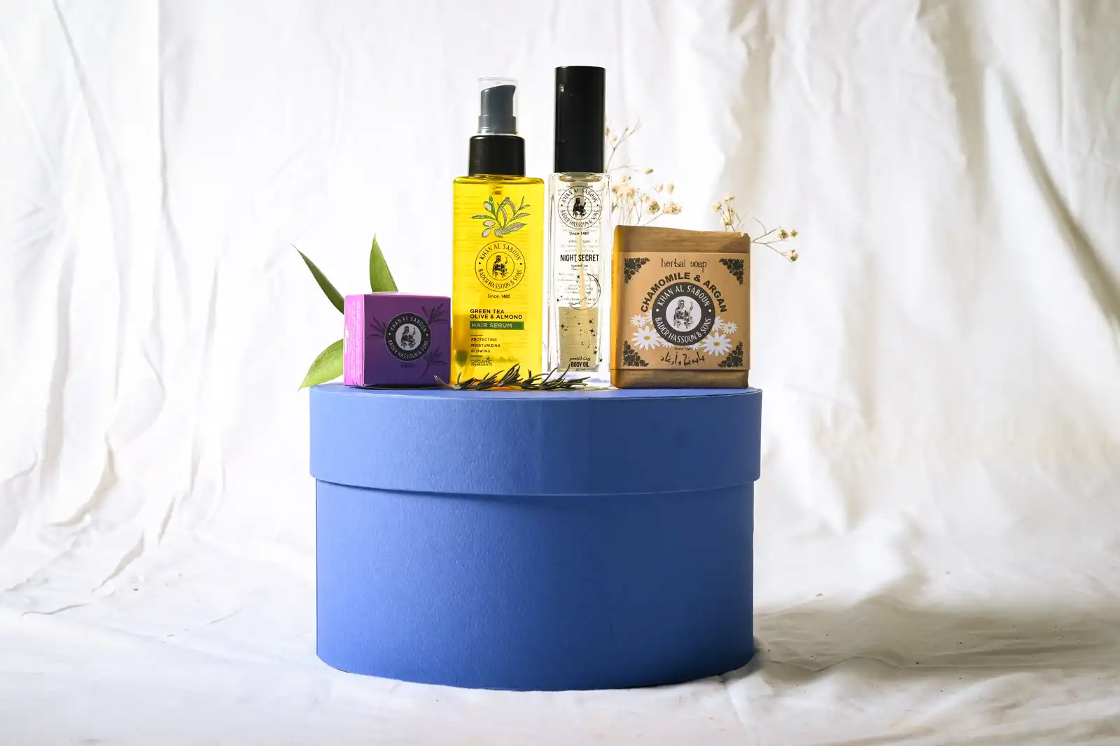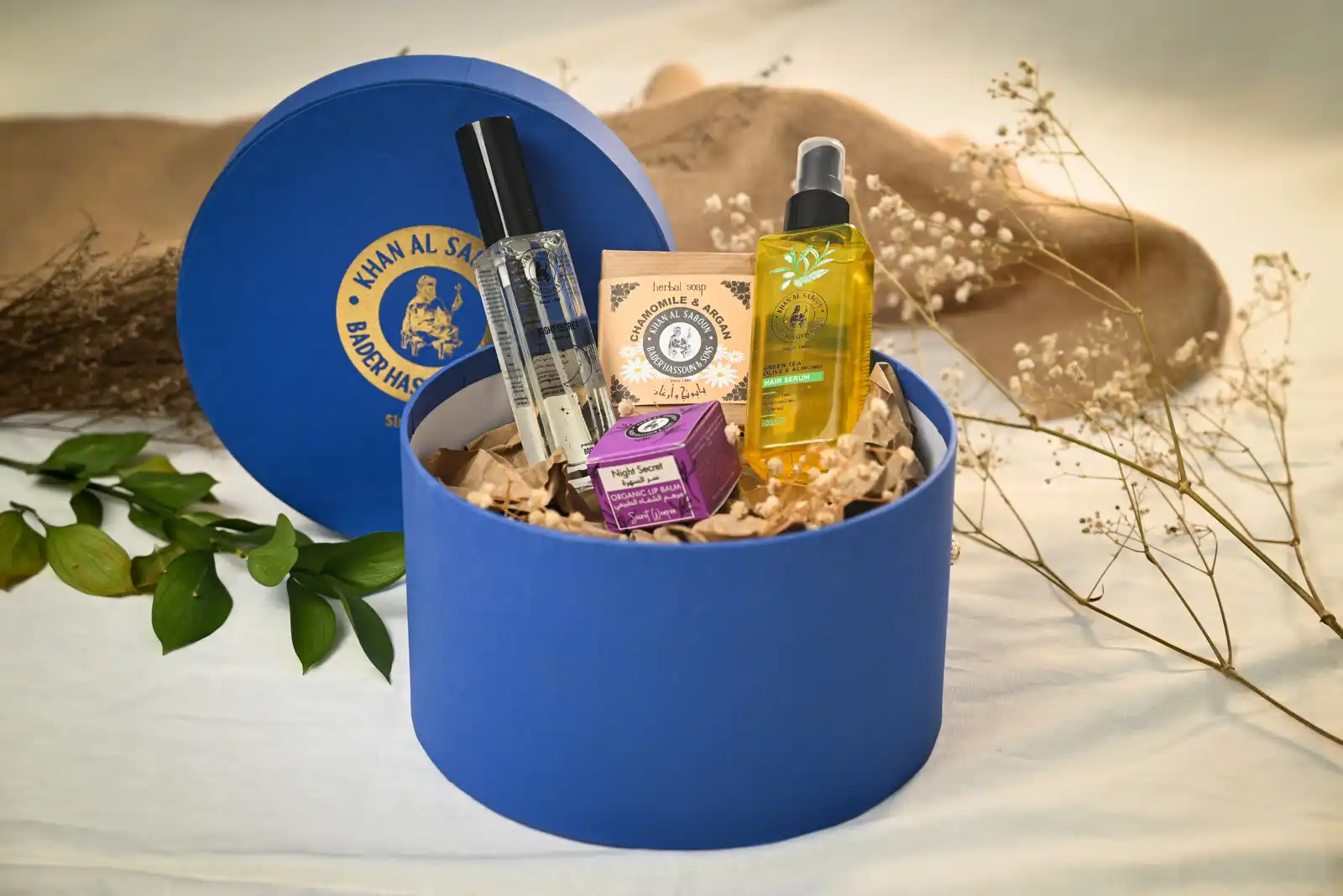 Elegant Medium round gift box, perfect for corporate gifting or Christmas presents. This luxurious packaging adds a touch of sophistication, with products that leave a lasting, captivating fragrance. Ideal for presenting premium skincare or personalized gifts.