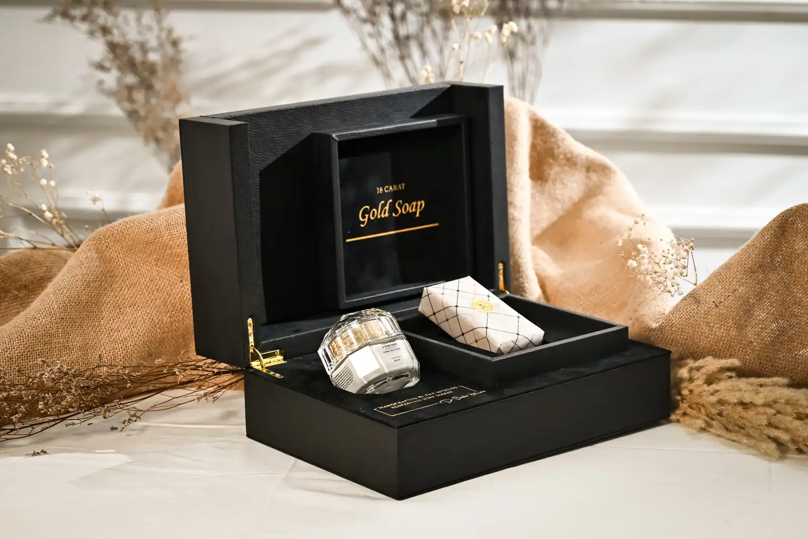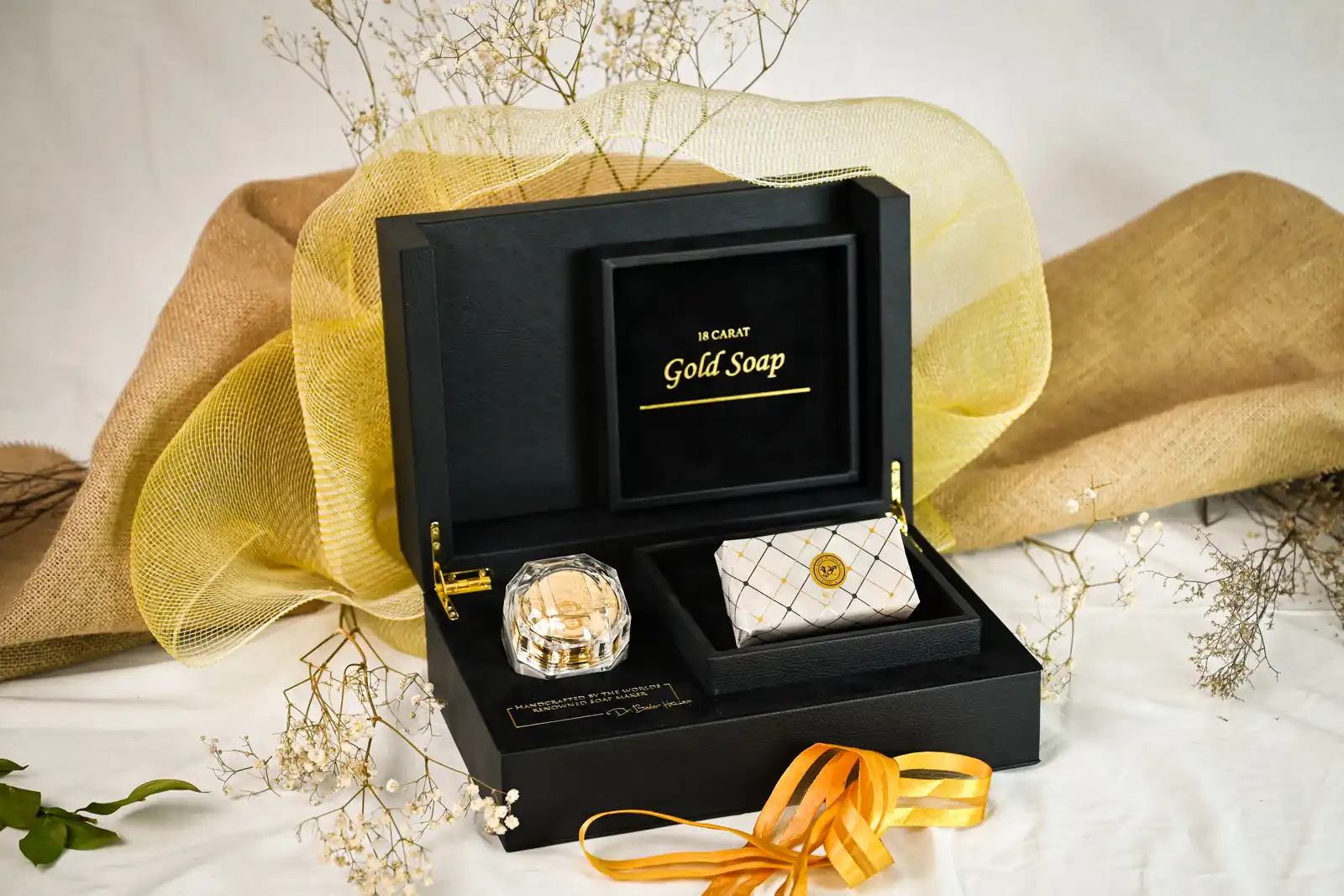 Indulge in the luxurious embrace of nature with our exclusive gRare Soap Of Gold, expertly crafted to blend opulence and beauty in perfect harmony. This premium soap, elegantly packaged in a high-end box, is handcrafted by renowned soap artisan Dr. Bader Hassoun. Gently cooked and formulated using the finest natural ingredients, this luxurious soap is a testament to sustainability, making it the perfect eco-friendly gift for those who appreciate both sophistication and organic beauty. Ideal for corporate gifts, Christmas, and special occasions.